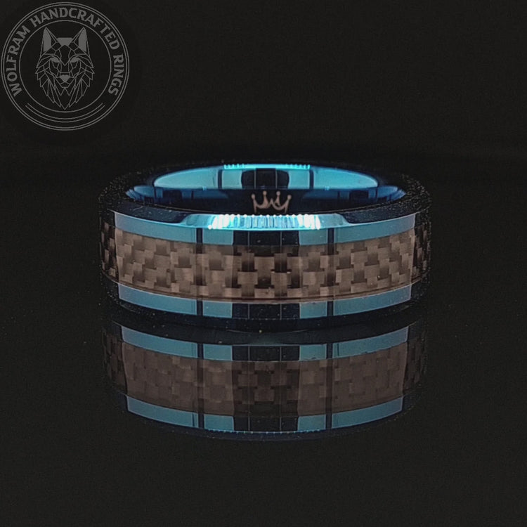 The Justin Ring features a high shine polished Cobalt Blue finish with Beveled edges & inlaid with genuine aerospace grade Carbon Fiber protected by our clearcoat Ring Armour™ to protect it from moisture and damage.