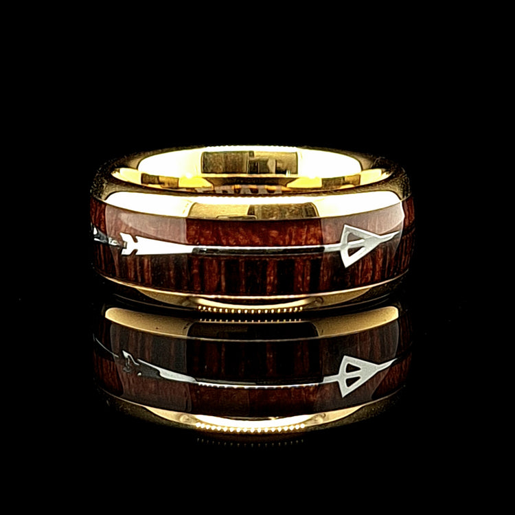 Materials: Koa Wood Inlay. 18K IP Yellow Gold