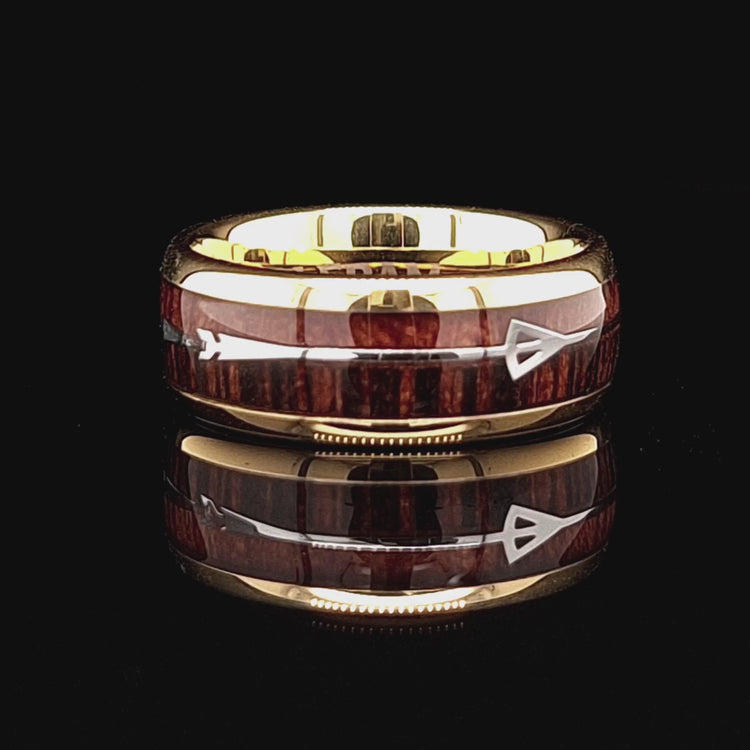 This 8mm wide ring is twin inlaid with genuine Hawaiian Koa wood separated by a Silver Arrow. Since we use real wood the pattern changes slightly for each ring. The wood inlay is protected by our clearcoat Ring Armour™ to protect it from moisture and damage. The 'Robin' is a classy ring fit for any occasion yet tough enough for everyday wear and the perfect conversation starter.