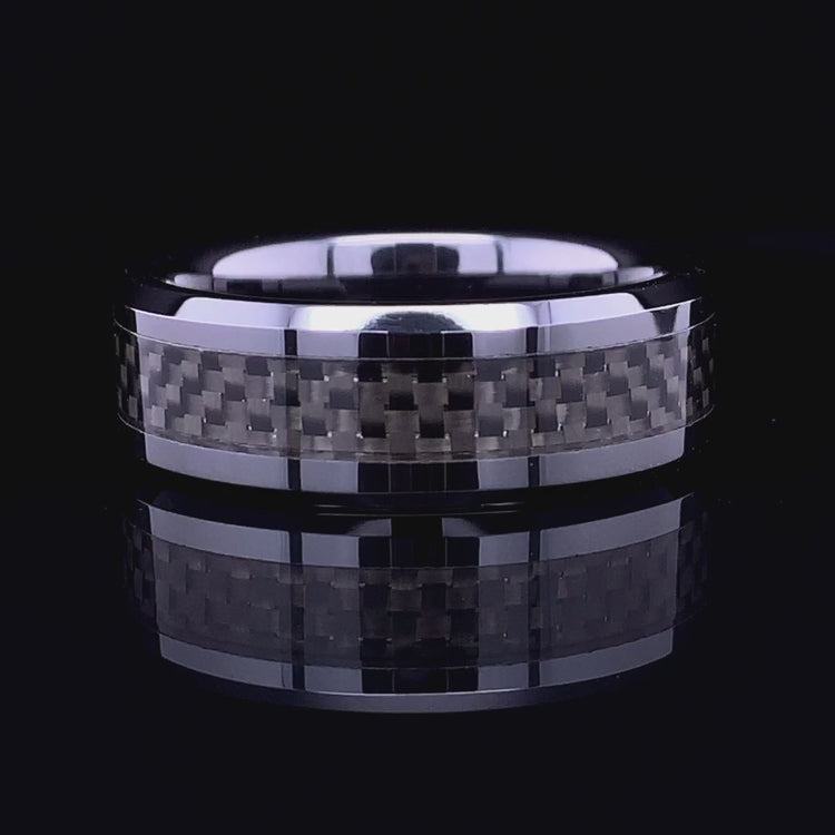 The Justin Ring features a high shine polished finish with Beveled edges & inlaid with genuine aerospace grade Carbon Fiber protected by our clearcoat Ring Armour™ to protect it from moisture and damage.