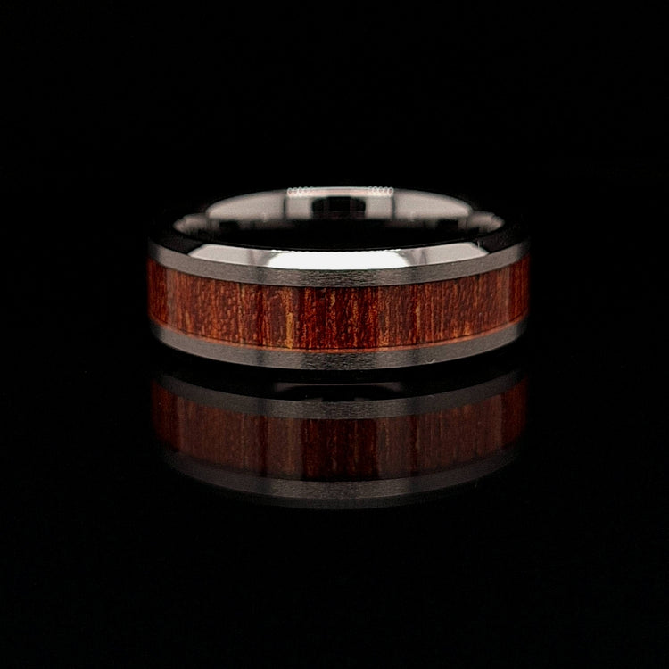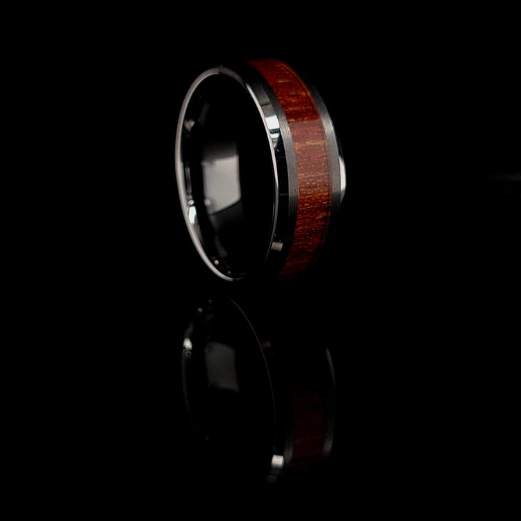 This 8mm wide ring is inlaid with beautiful Rosewood. Since we use real wood the natural colour & pattern changes slightly for each ring. The wood inlay is protected by our clearcoat Ring Armour™ to protect it from moisture and damage. The 'Lincoln' is a classy ring fit for any occasion yet tough enough for everyday wear and the perfect conversation starter.